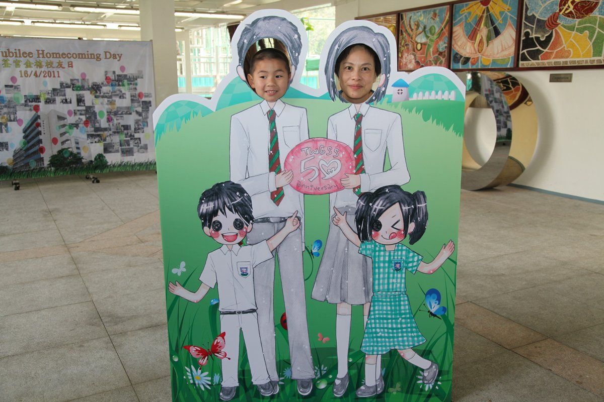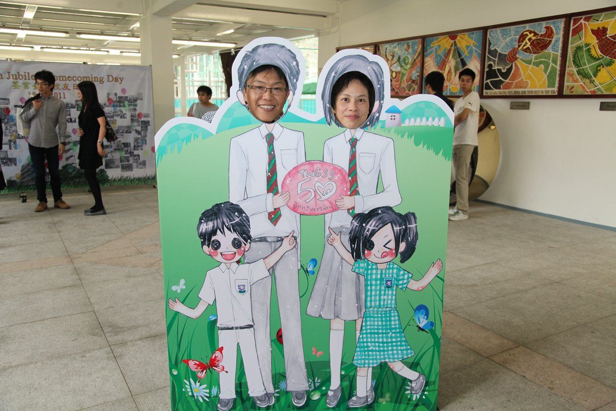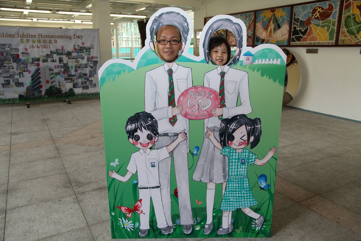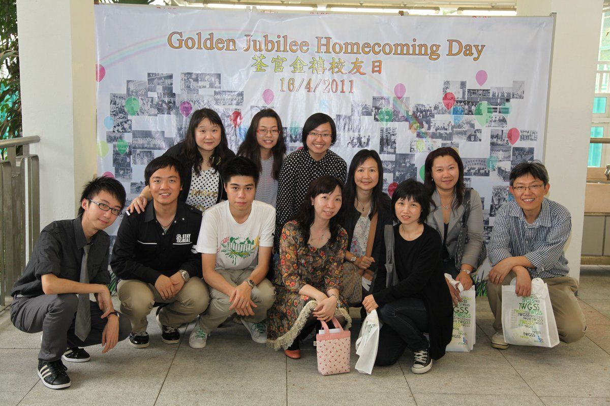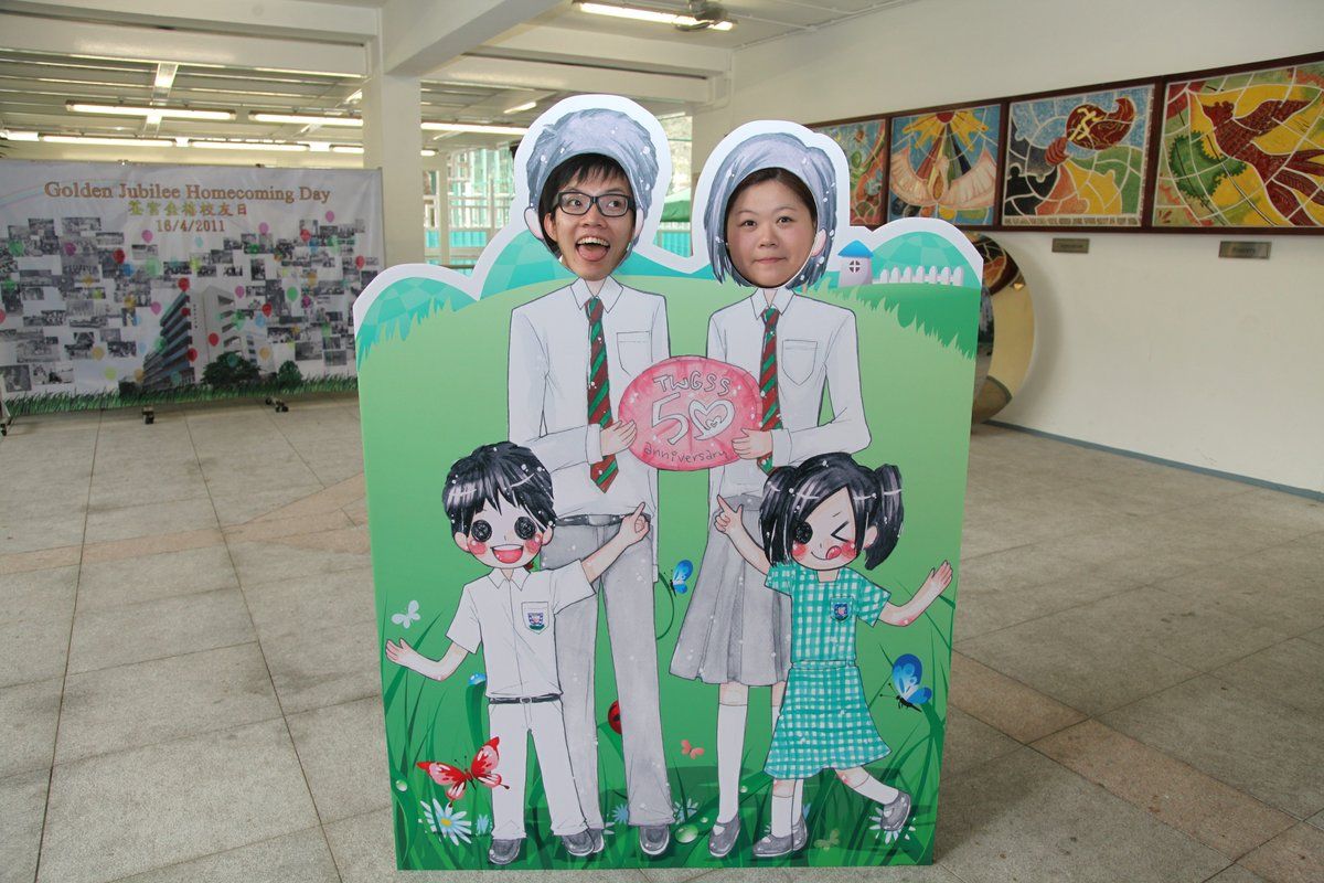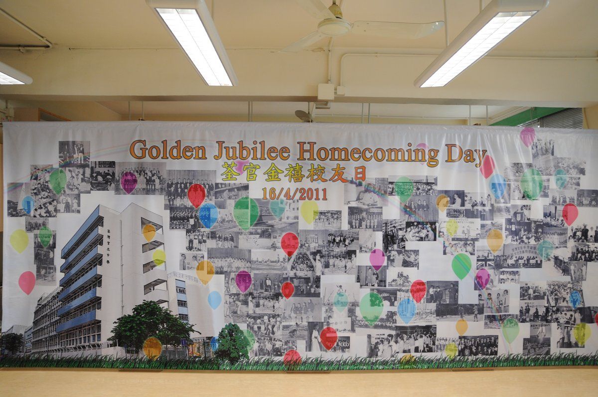 四月十六日下午二時,荃官金禧校友日正式開始。到校的校友絡繹不絕,當中包括剛畢業的、正在外地升學趁假期回來的、推著嬰兒車的、拖男帶女的、已移居外地專程回來的、以及正在享受退休生活的,大家聚首一堂,場面熱鬧非常。禮堂一角,播放著校友專訪的片段,又陳設了相集,校友們在當中尋找自己的踪影,樂此不疲。圖書館內設有茶聚,一個由校友送贈母校的超級大蛋糕令會場生色不少。大家一邊品嚐美點,一邊暢談近況,開懷大笑之聲不絕於耳。