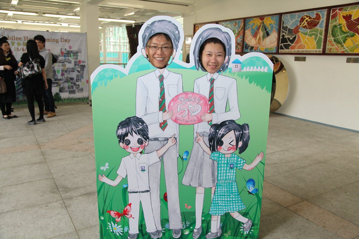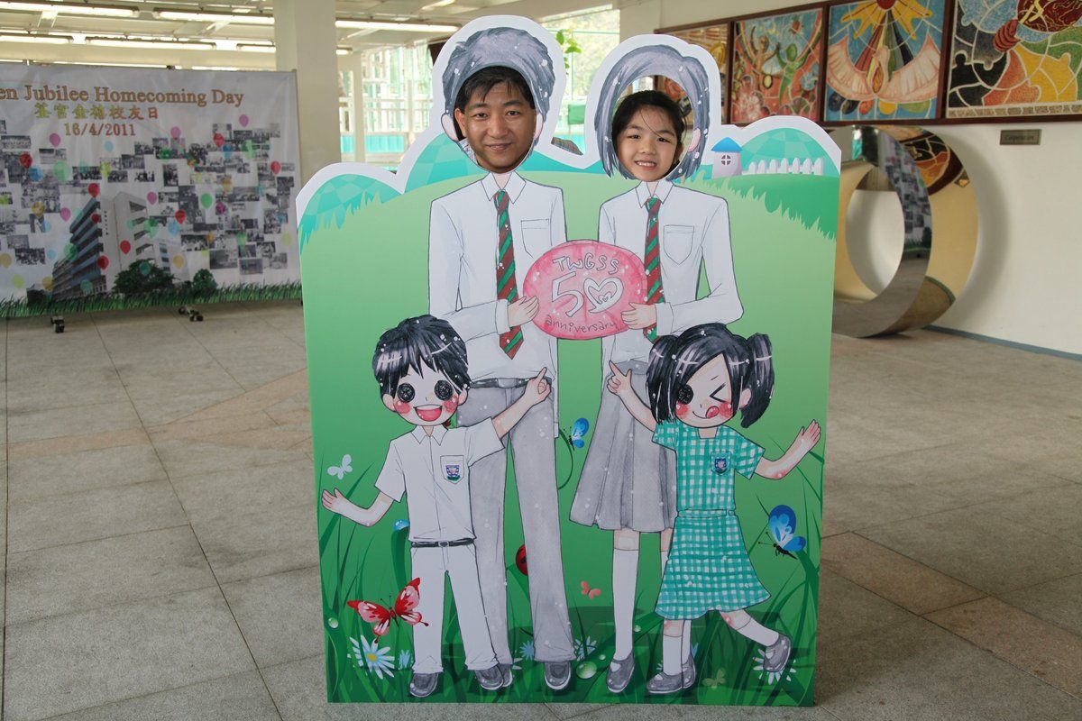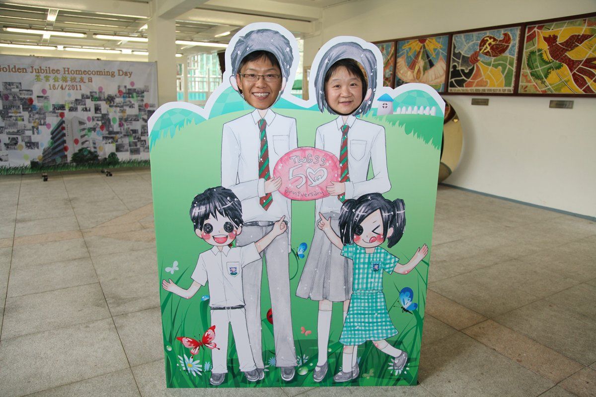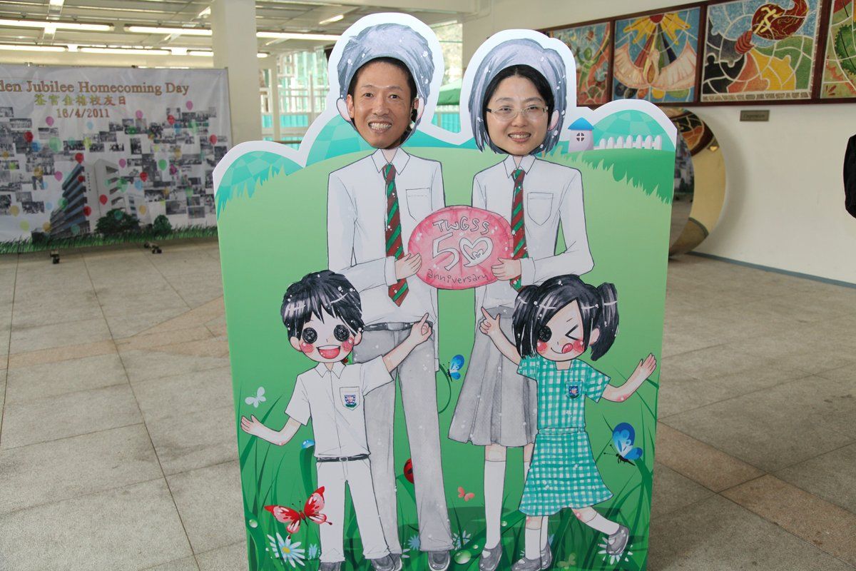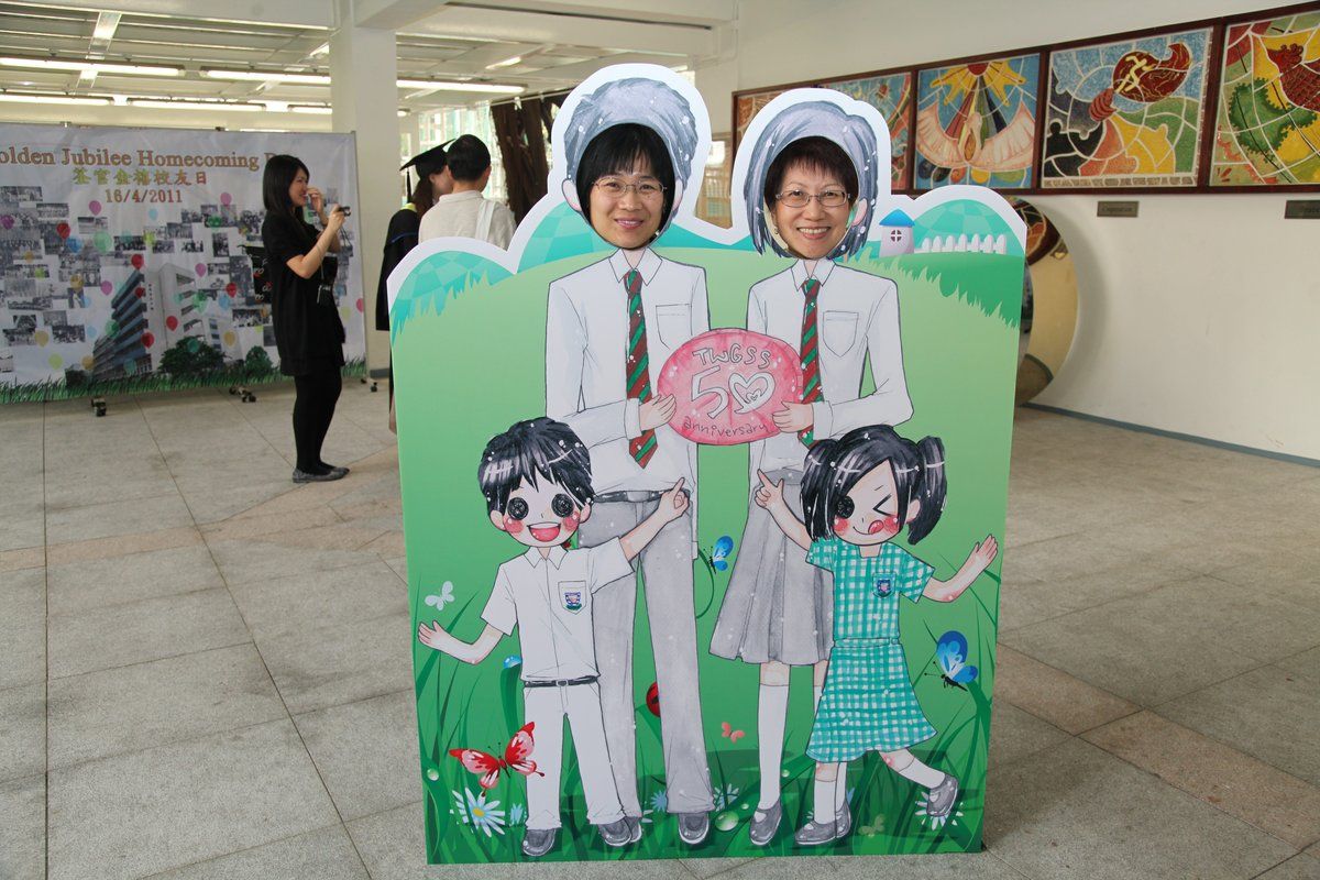 四月十六日下午二時,荃官金禧校友日正式開始。到校的校友絡繹不絕,當中包括剛畢業的、正在外地升學趁假期回來的、推著嬰兒車的、拖男帶女的、已移居外地專程回來的、以及正在享受退休生活的,大家聚首一堂,場面熱鬧非常。禮堂一角,播放著校友專訪的片段,又陳設了相集,校友們在當中尋找自己的踪影,樂此不疲。圖書館內設有茶聚,一個由校友送贈母校的超級大蛋糕令會場生色不少。大家一邊品嚐美點,一邊暢談近況,開懷大笑之聲不絕於耳。