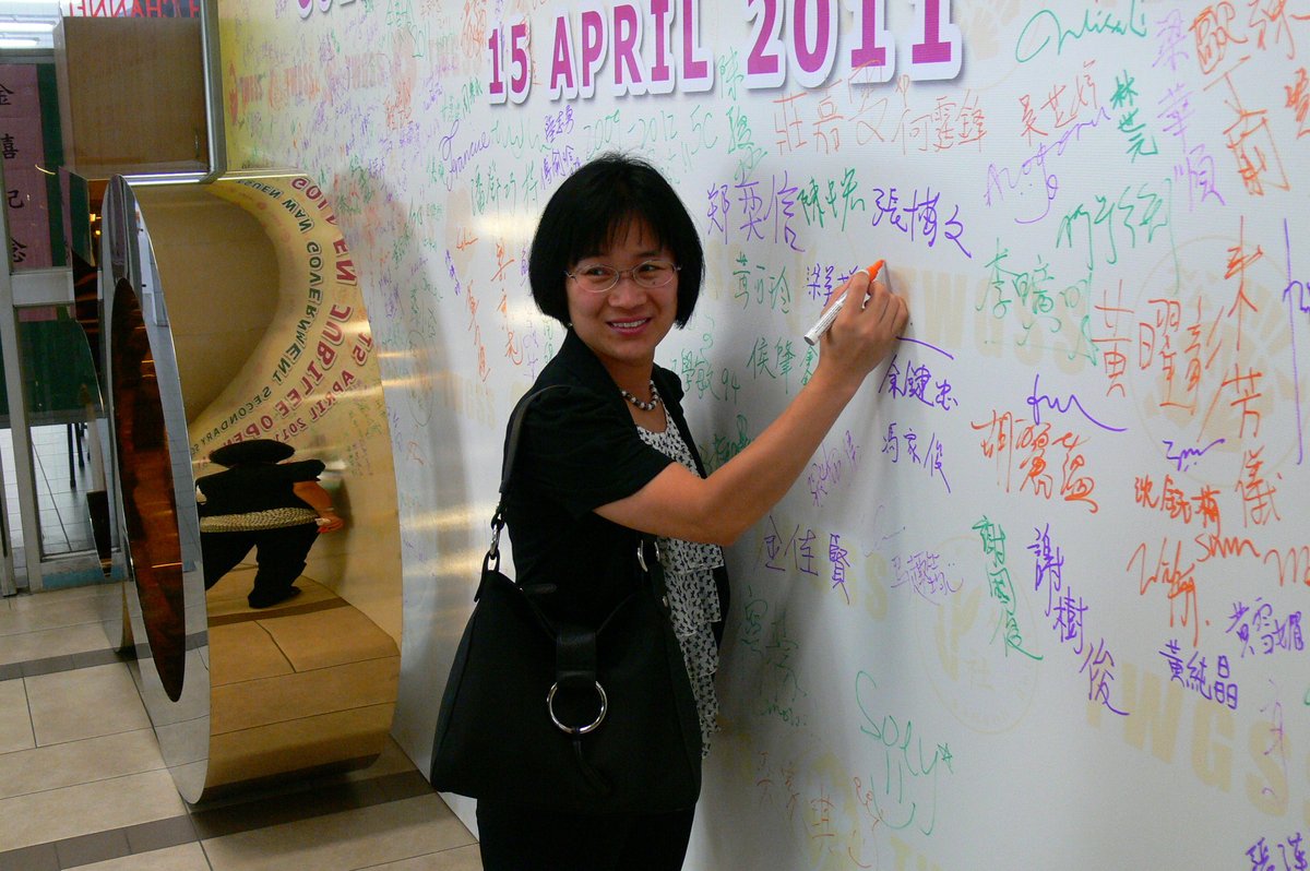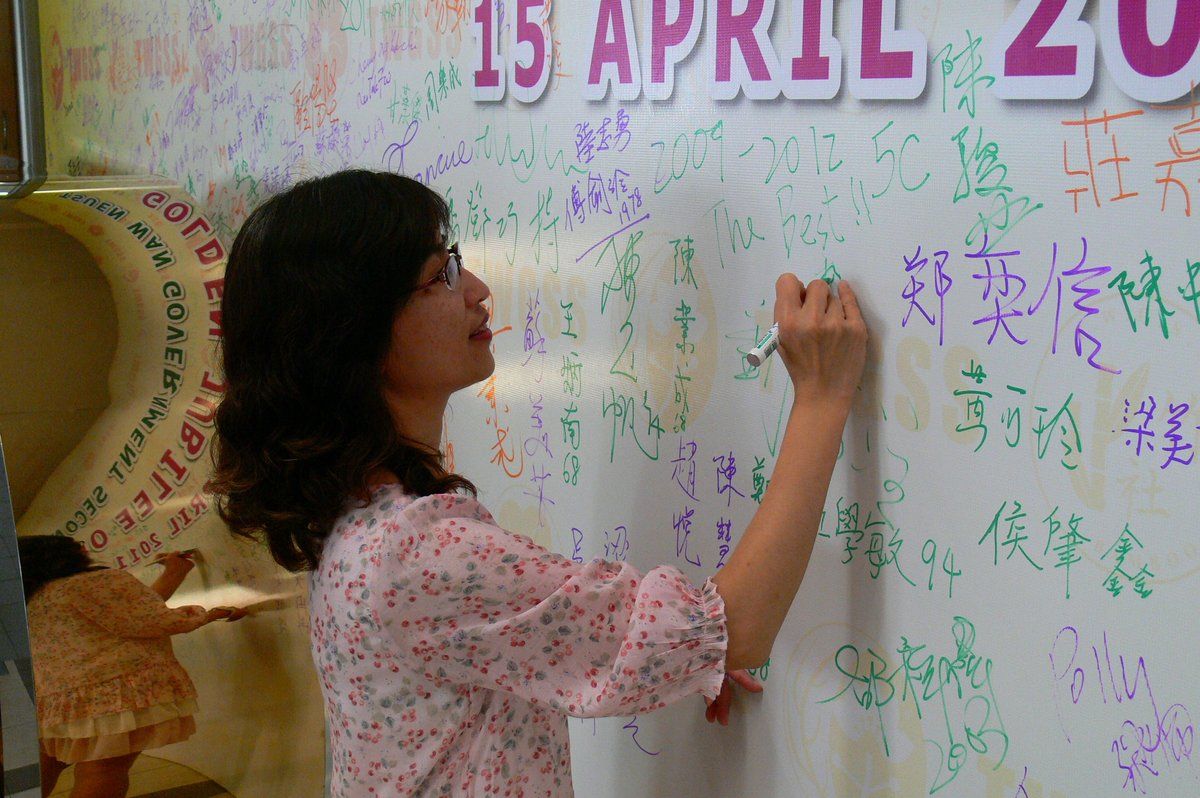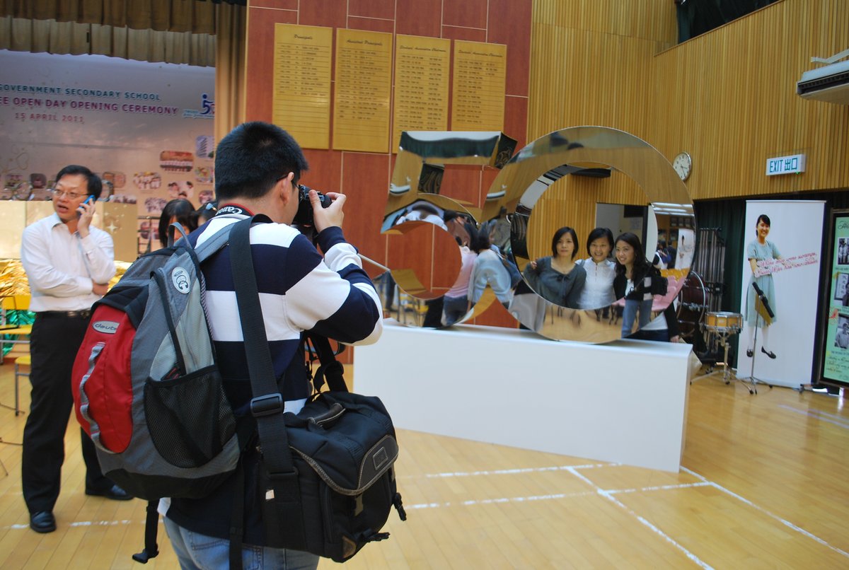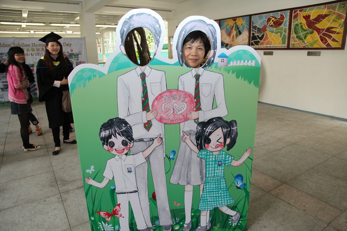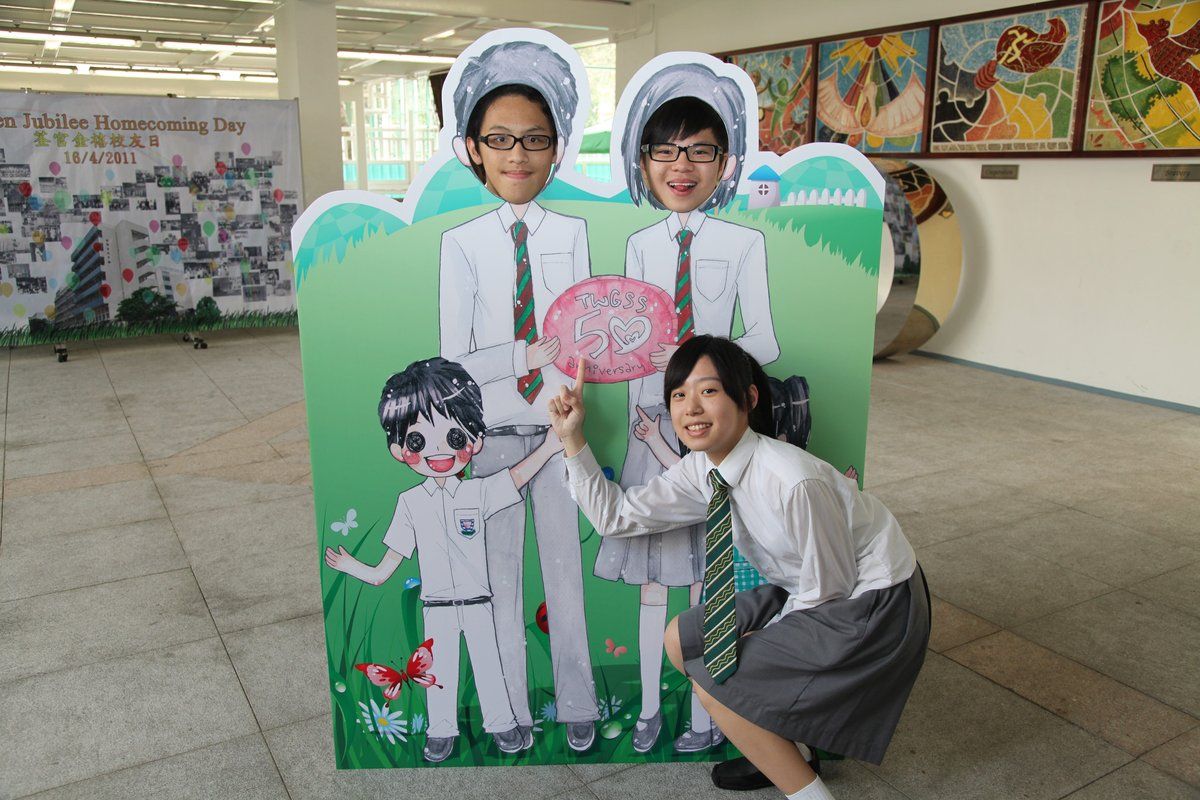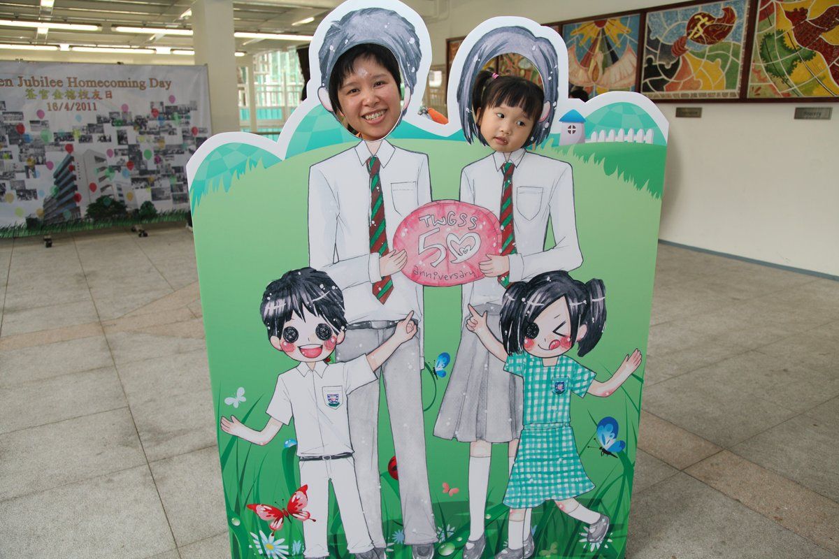 四月十六日下午二時,荃官金禧校友日正式開始。到校的校友絡繹不絕,當中包括剛畢業的、正在外地升學趁假期回來的、推著嬰兒車的、拖男帶女的、已移居外地專程回來的、以及正在享受退休生活的,大家聚首一堂,場面熱鬧非常。禮堂一角,播放著校友專訪的片段,又陳設了相集,校友們在當中尋找自己的踪影,樂此不疲。圖書館內設有茶聚,一個由校友送贈母校的超級大蛋糕令會場生色不少。大家一邊品嚐美點,一邊暢談近況,開懷大笑之聲不絕於耳。